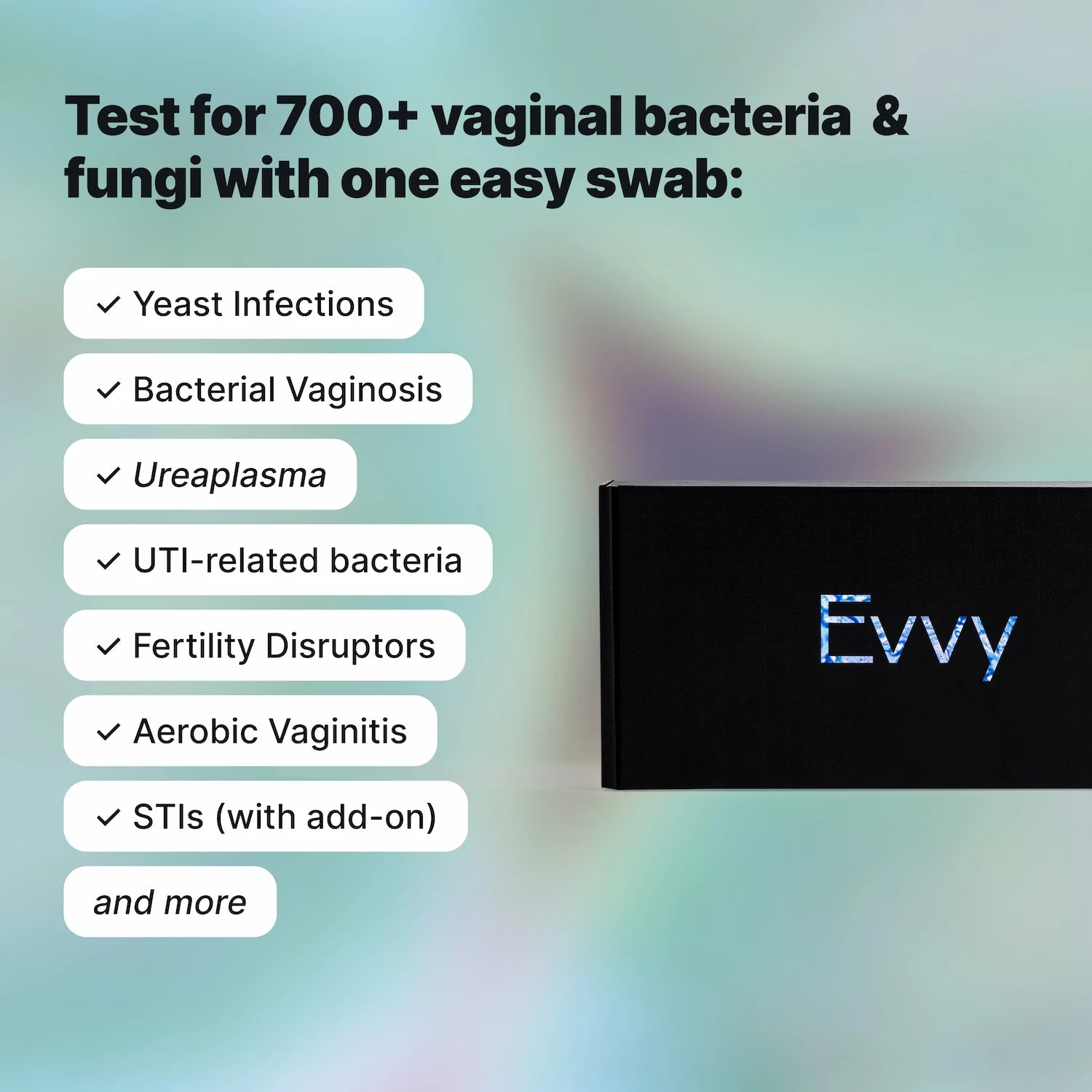 The Evvy Vaginal Health Test with Expanded PCR Panel combines comprehensive vaginal microbiome sequencing with faster PCR-based screening for common infections and antibiotic resistance.